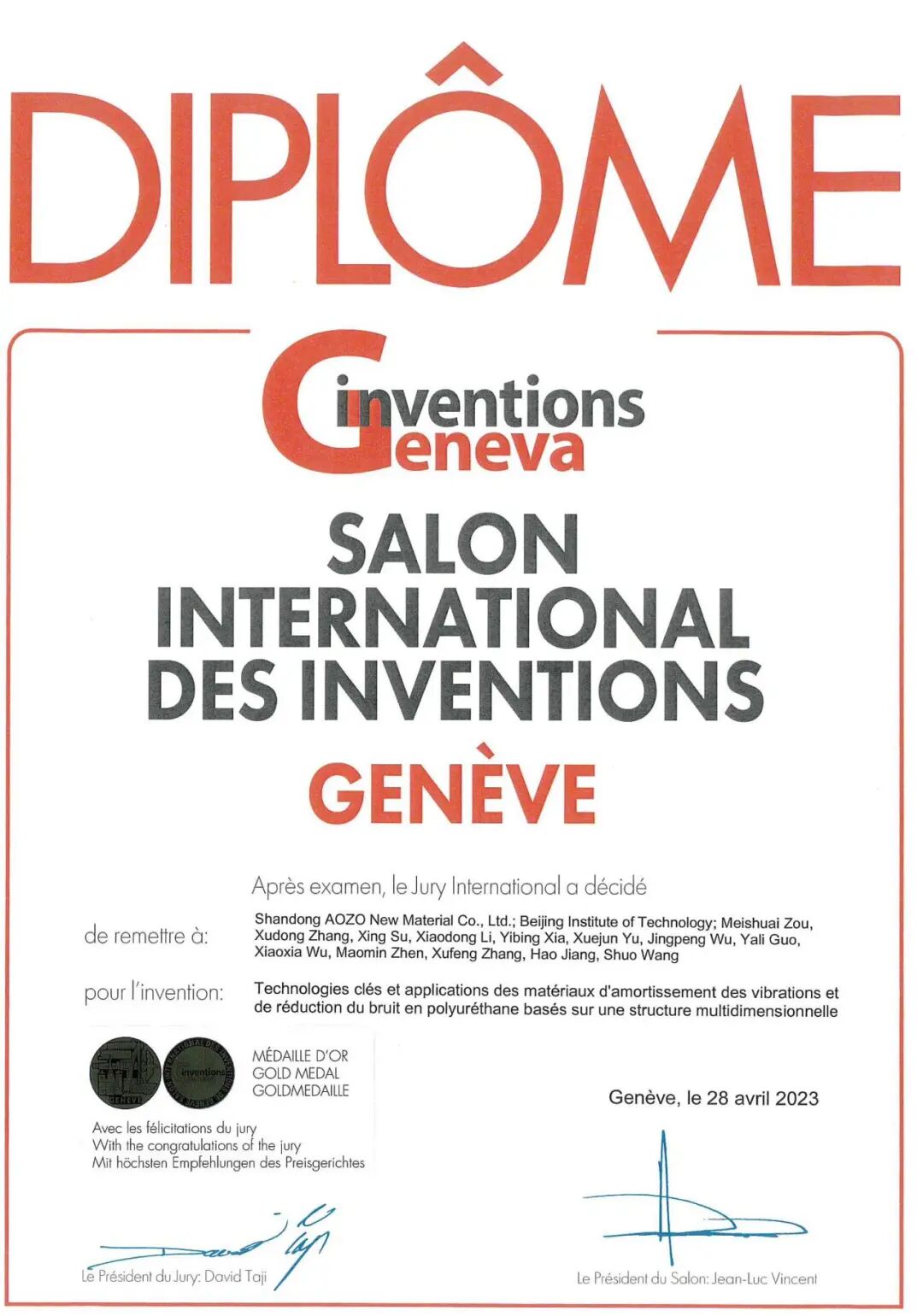 奥卓新材掌握关键核心技术,在原料配方和制造工艺上实现完全自主可控,技术水平国际领先。获批建设“多维结构减振与防护材料山东省工程研究中心”“bv伟德国际1946官网功能高分子材料概念验证平台”“枣庄市功能高分子材料研究与应用重点实验室”等研发平台,相关成果荣获“山东省技术发明一等奖”“日内瓦国际发明展特别嘉许金奖”“中国发明协会一等奖”“环保技术进步一等奖”等多个奖项。构建了“进口替代+原创引领”的产品谱系,满足多领域、多场景应用需求,实现了从改进型创新到突破型创新的根本性跨越。