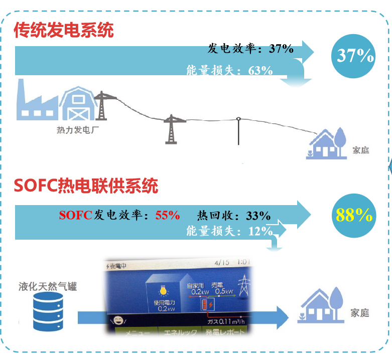 家庭用户SOFC热电联供系统与传统电力发电和利用效率对比