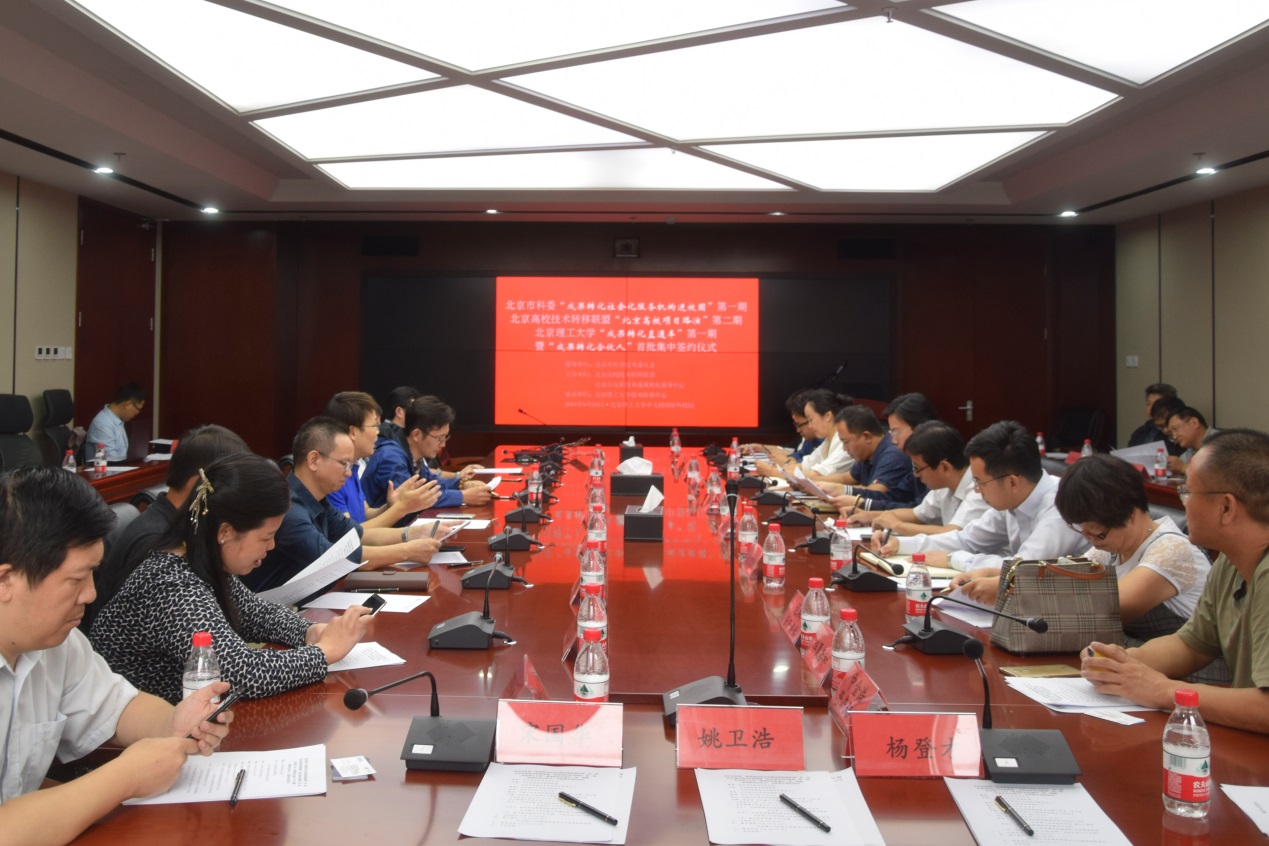 2018年9月18日下午,bv伟德国际1946官网 “成果转化直通车”项目路演在学校中关村国防科技园正式启动,bv伟德国际1946官网首批“成果转化合伙人”集中签约。同时,本次活动也是北京市科委推动的“科技成果转化社会化服务机构进校园”首站。