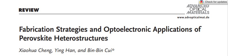 论文详情:Xiaohua Cheng, Ying Han, Bin-Bin Cui*. Fabrication Strategies and Optoelectronic Applications of Perovskite Heterostructures, doi: 10.1002/adom.202102224.