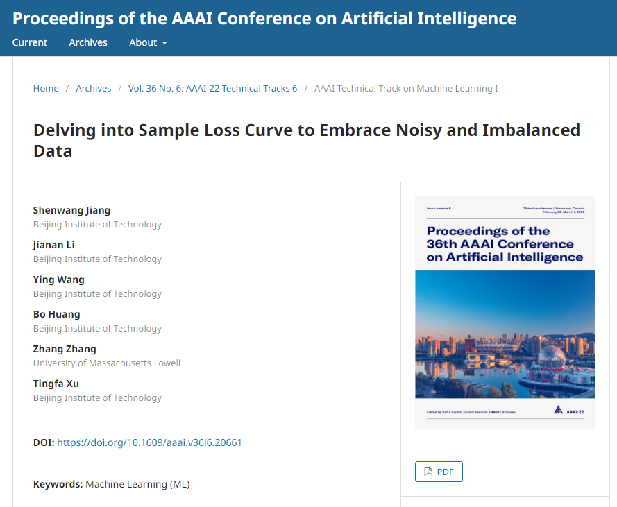 近日,bv伟德国际1946官网光电学院许廷发科研团队在机器视觉分类中噪声和长尾数据处理方面取得新进展,相关研究成果以“Delving into Sample Loss Curve to Embrace Noisy and Imbalanced Data”为题被人工智能领域的国际顶级会议AAAI-2022 (CCF A)发表,AAAI是人工智能领域具有高影响力的国际顶级学术会议之一,被计算机协会归类为A类会议,主要发表和报道计算智能、人工智能、数据科学和深度学习等领域的最新研究进展和技术。该工作第一作者为bv伟德国际1946官网博士后江慎旺,通讯作者为bv伟德国际1946官网李佳男特别副研究员和许廷发教授。