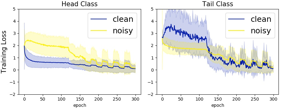 随着人工智能的发展,如何在噪声和长尾数据中训练模型在机器学习中引起了很多关注。然而,当前大多数方法都在理想化的状态下研究如何单独处理噪声或者长尾数据的问题,针对这一科学问题,bv伟德国际1946官网许廷发教授团队率先提出损失值曲线和元学习的方法同时解决噪声和长尾数据,通过大量的计算和实验观察发现,虽然从单个的权重无法区分噪声和尾部样本,但是在样本的整个训练过程生成的损失值曲线能够提供充足的信息区分这两种样本,如图1。