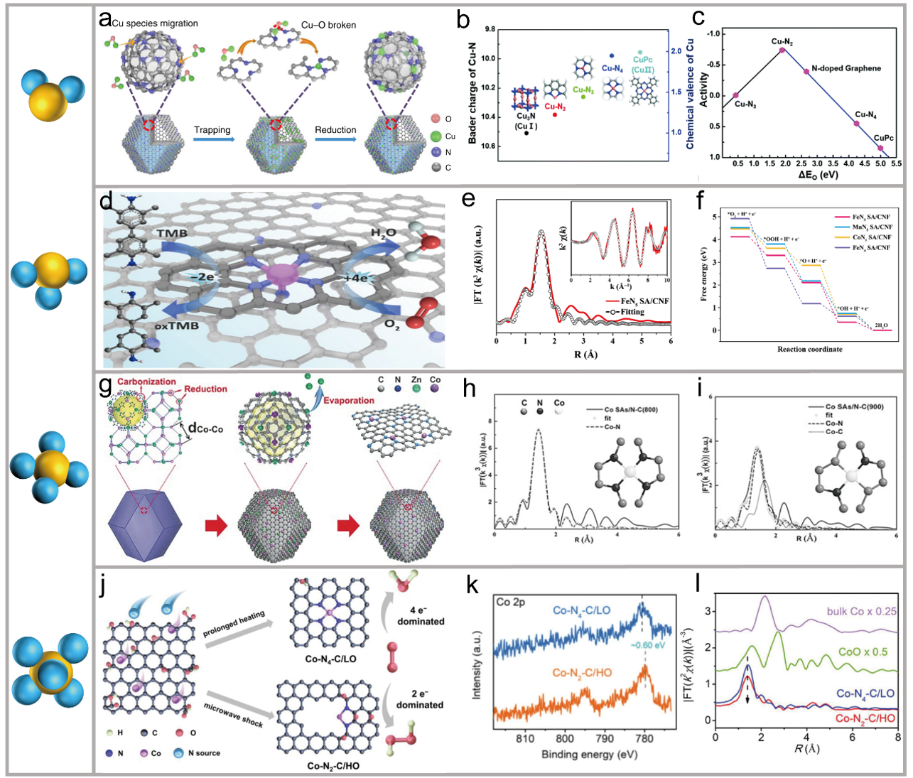 中心活性金属的配位数已被证明与中间吸附有内在的关系,从而与催化活性有内在的关系。为了揭示配位数调控的机理,人们探索了多种策略。其中,基于高温煅烧和还原的控制策略对氮配位数进行了精确调控。