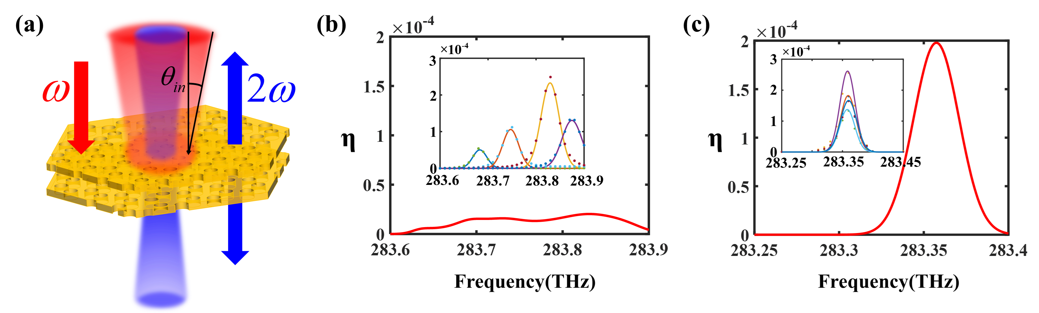 图3. 广角光源下moiré准BICs增强SHG方案。