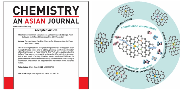 此外,基于该工作,研究生宋鹏宇于2022年8月受邀在《Chemistry An Asian Journal》杂质上发表题为“Microenvironment Modulation in Carbon-Supported Single-Atom Catalysts for Efficient Electrocatalytic CO2 Reduction”的综述,针对碳基单原子配位调控:包括第一配位壳层、第二及更高配位壳层及双活性位点调控,应用于电催化二氧化碳还原进行了全面阐述,为应用于电催化二氧化碳还原的单原子催化剂设计提供了独特见解。