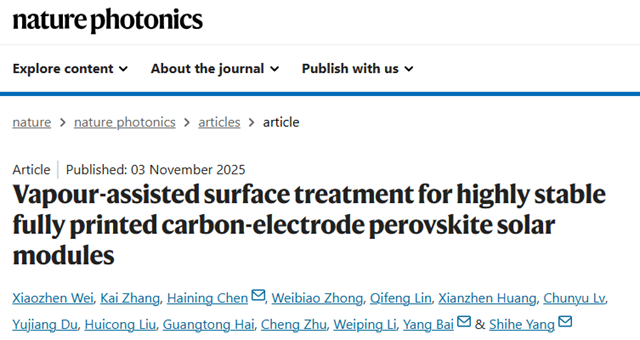 北理工团队在全印刷钙钛矿模组研究中取得重要进...2025-11-13 -