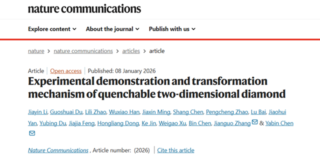 北理工课题组在二维金刚石的高温高压可控制备方...2026-01-12 -