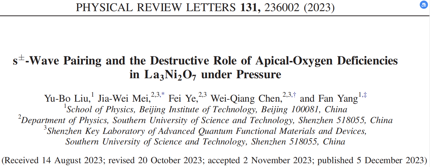 北理工课题组在四倍电荷超导领域取得重要进展2023-12-07 -