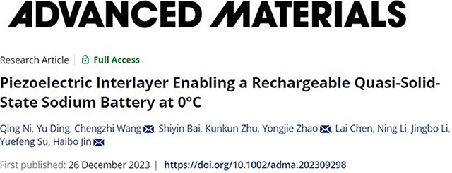 北理工课题组在低温固态钠电池研究方面取得进展2023-12-27 -