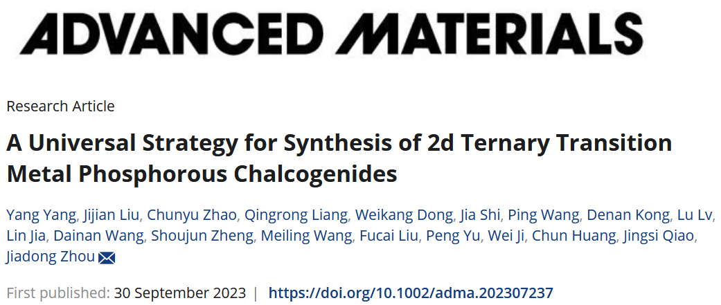 北理工团队在二维过渡金属磷硫化合物可控合成方...2023-10-08 -
