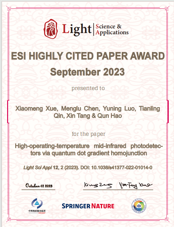 北理工团队在室温运行中波红外探测器研究方面取...2023-11-09 -