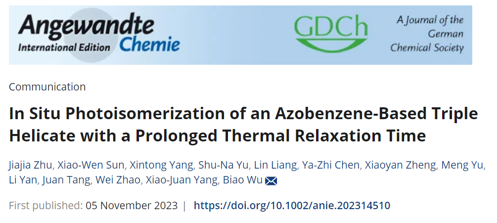 北理工团队在偶氮苯型阴离子配位驱动三股螺旋体...2023-11-08 -