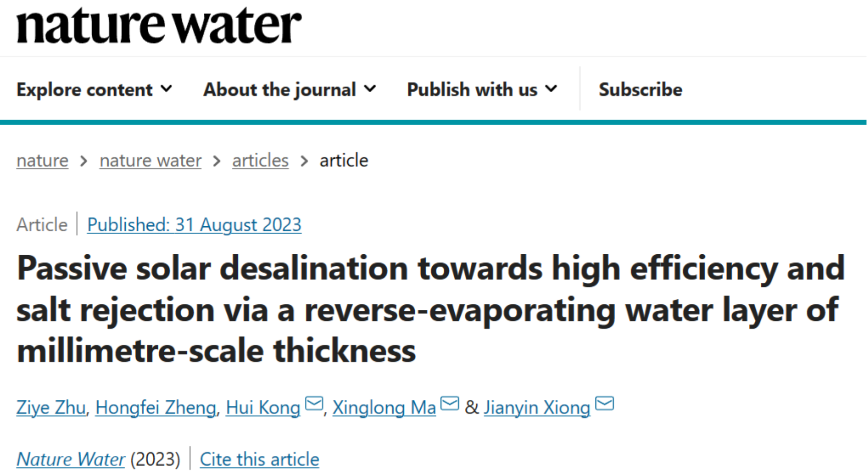 北理工课题组在太阳能海水淡化领域取得重要进展2023-09-04 -