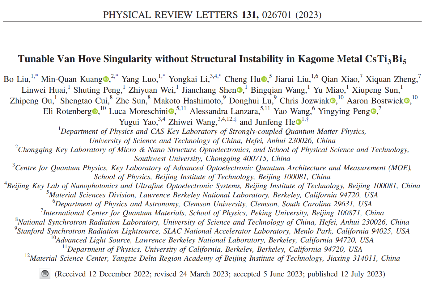 北理工团队在新型笼目结构材料方面取得重要进展2023-09-06 -