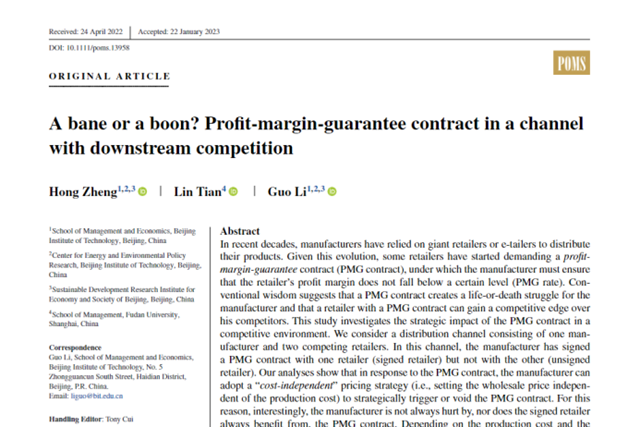 北理工团队在平台毛利保护契约方面取得重要研究...2023-08-18 -