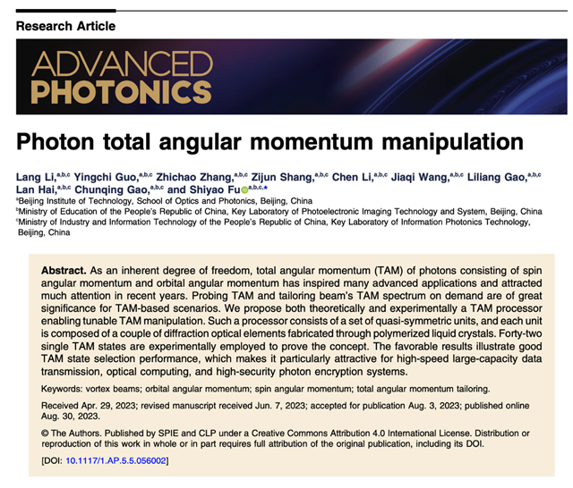 北理工团队在光子角动量调控研究方面取得重要突...2023-09-04 -