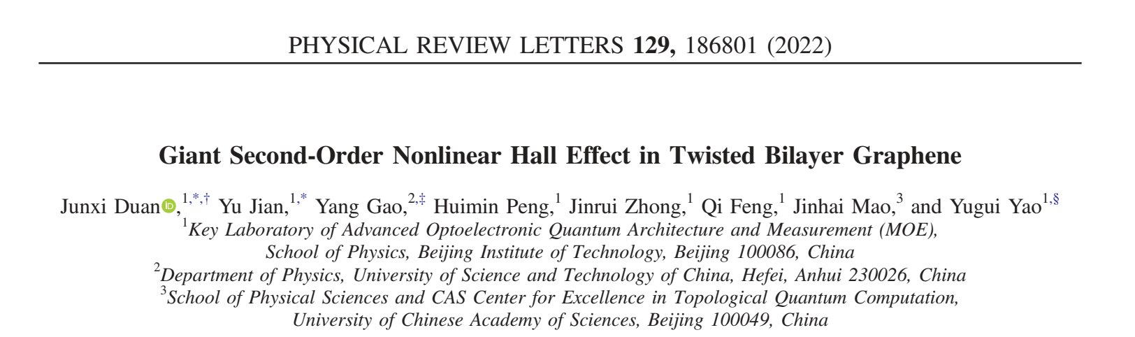 北理工团队在转角石墨烯体系的二阶非线性霍尔输...2022-11-11 -