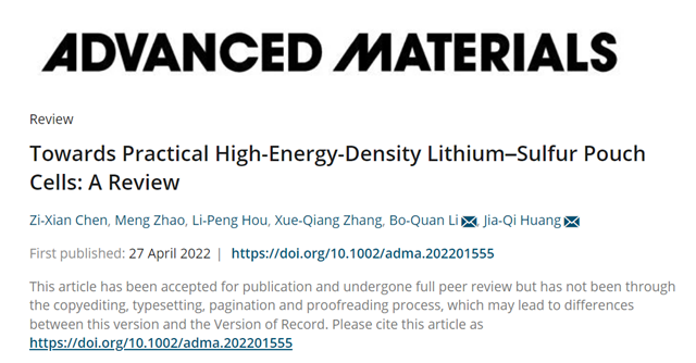 北理工课题组在锂硫软包电池领域发表综述文章2022-06-07