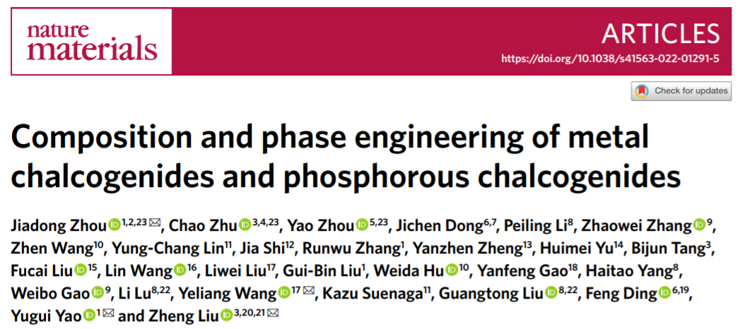 北理工团队在低维金属硫族/磷硫族化合物的组成...2022-07-18 -