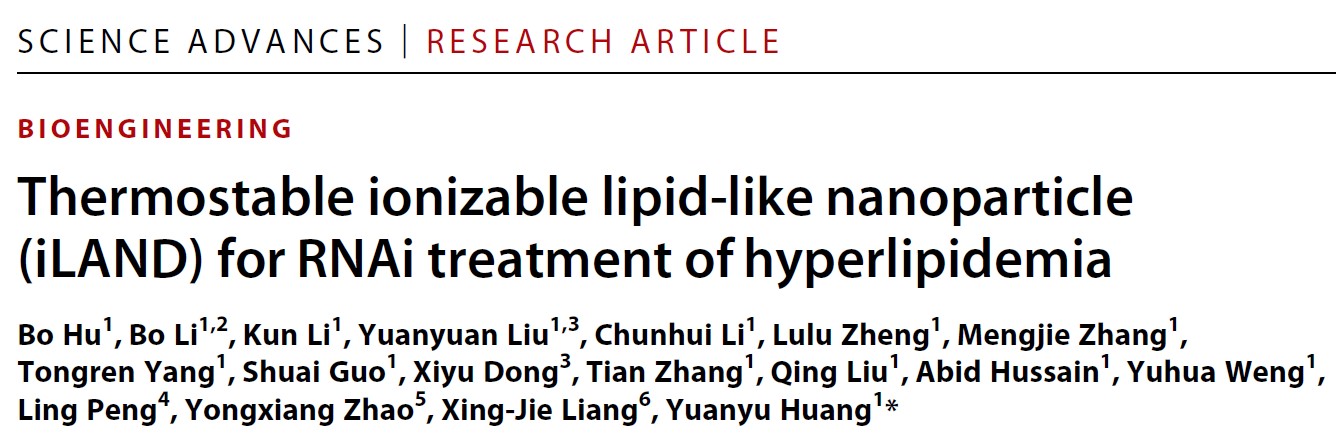 北理工课题组在新型可电离脂质核酸载体及降血脂...2022-04-01 -