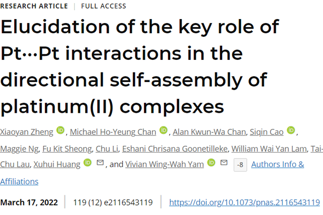 北理工在铂(II)配合物自组装机制研究取得重...2022-05-05 -