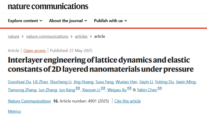 北理工课题组在二维材料层间耦合高压调控方面取...2025-05-29