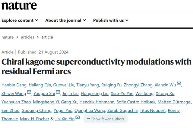 北理工团队在笼目材料超导领域取得系列进展2024-08-30