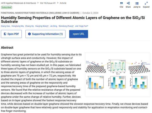 北理工课题组在硅基不同原子层厚度的石墨烯湿度...2024-10-24 -