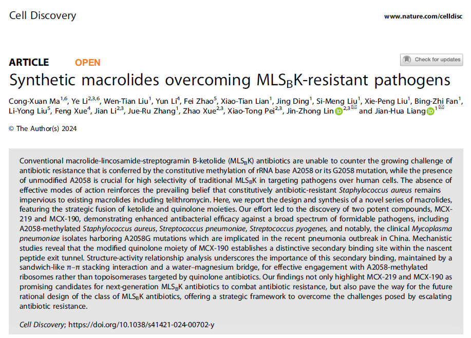 北理工团队在第五代抗耐药菌大环内酯设计及机制...2024-07-12