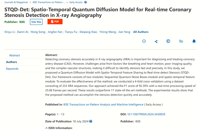 北理工课题组在冠脉狭窄检测方面取得新突破2024-08-23 -