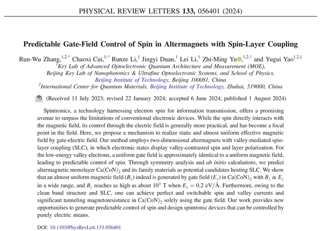 北理工团队提出突破性全电控自旋新机制2024-08-08 -