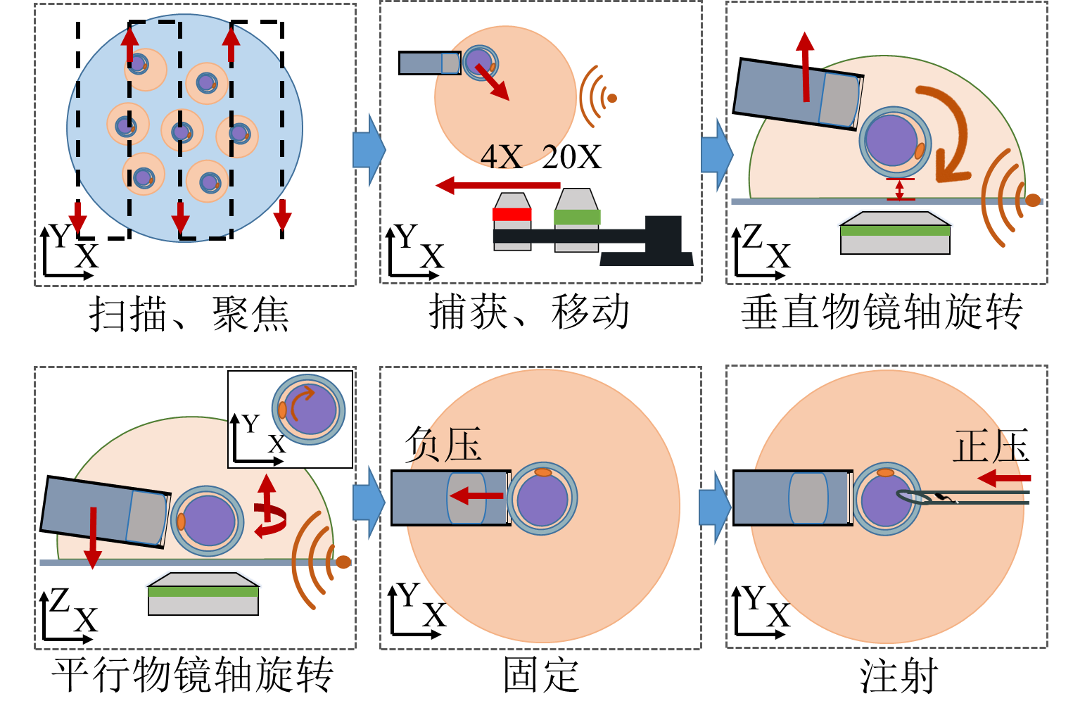 现有的微操作机器人技术难以满足辅助生殖治疗中卵母细胞注射以及胚胎三维观测对高效率、低损伤、多样化微操作的需求。微流控芯片在生物医学领域的广泛应用证明了微流体力在细胞等微小生物目标低损伤操作上的优越性。在开放环境中激励微流体,利用微流体力驱动捕获、移动、旋转等多样化低损伤操作,实现卵母细胞注射前机器人化位姿操控以及胚胎长周期多角度立体观测,对辅助生殖具有重要意义。