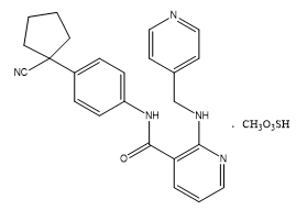 甲磺酸阿帕替尼(apatinib mesylate),是一种酪氨酸激酶血管内皮生长因子受体VEGFR-2抑制剂(TKI),吡啶甲酰胺甲磺酸盐,通过竞争性抑制VEGFR-2细胞内ATP的结合位点磷酸化,而阻断下游信号转导,进而抑制肿瘤血管的生成,以此抑制肿瘤的生长。甲磺酸阿帕替尼是全球首个被证实在晚期胃癌标准化疗失败后安全有效的小分子抗血管生成靶向药物,同时,阿帕替尼也是目前晚期胃癌靶向药物中唯一的口服制剂,可显著延长晚期胃癌患者的生存时间,有效提高患者治疗的依从性。