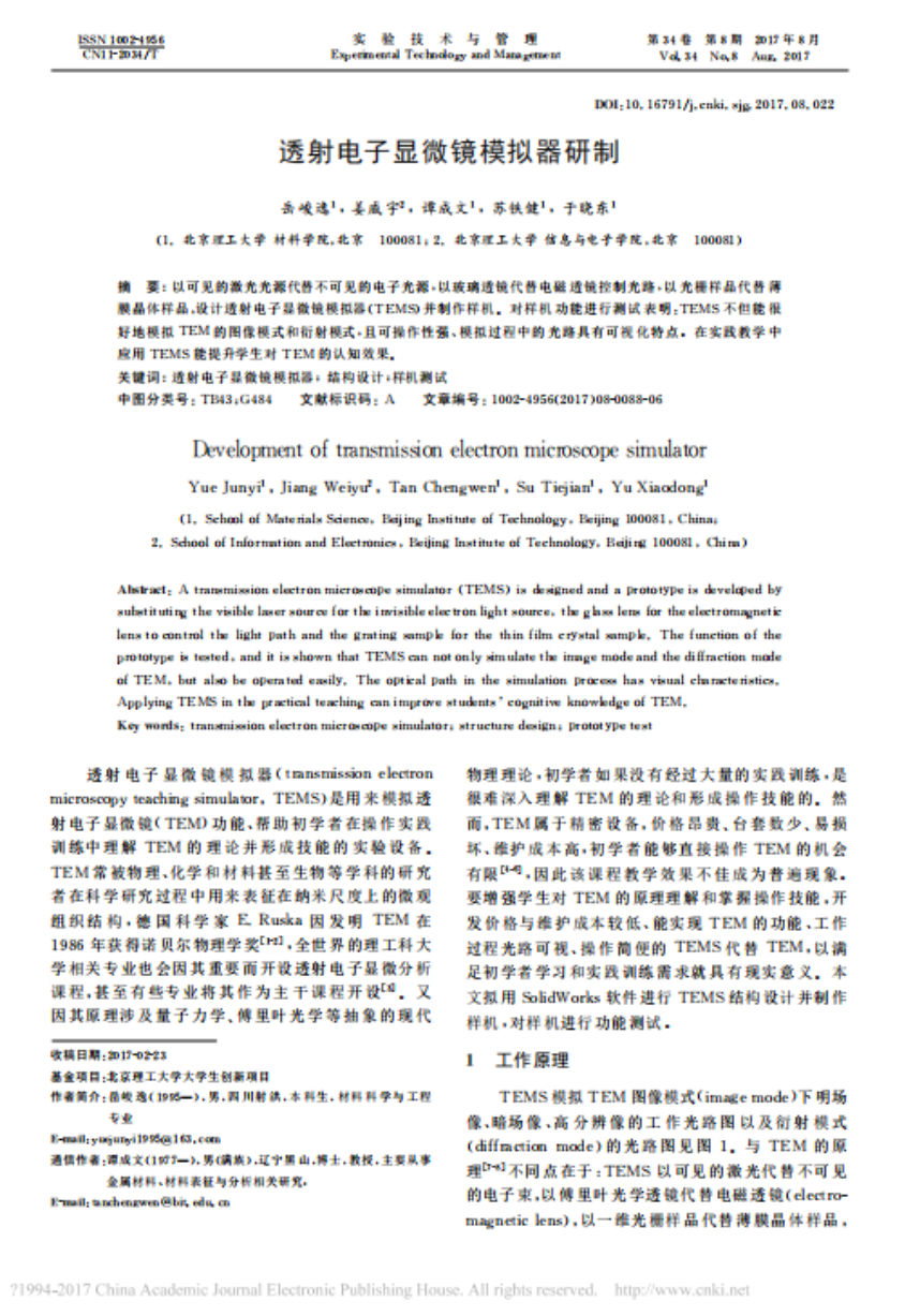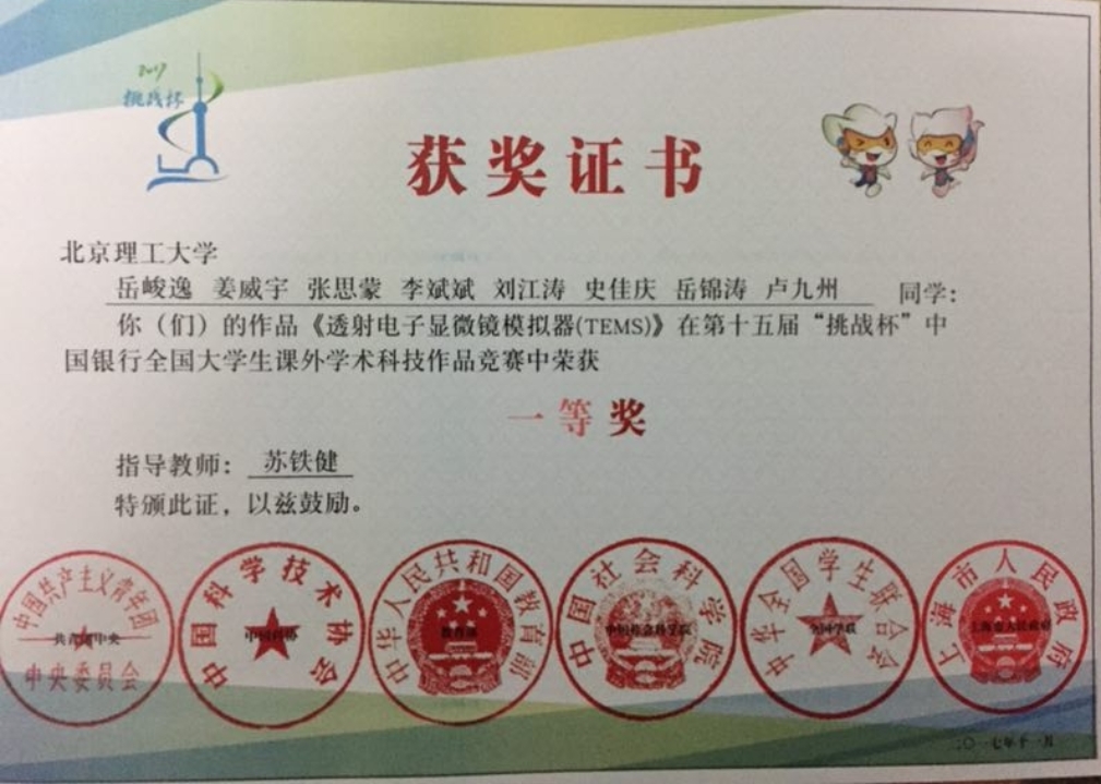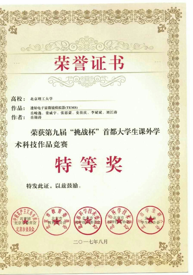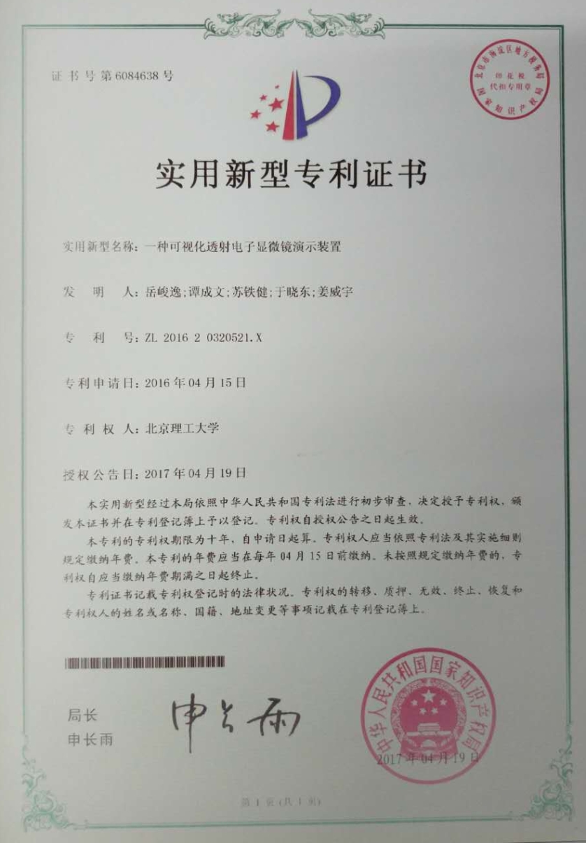 “材料微观结构分析”是材料学、物理学、化工、地质学、生物学、医学等诸多专业学生需要掌握的重要知识和技能,而透射电子显微分析是其中的重点和难点。透射电子显微镜模拟器(TEMS)以科学的方式、廉价的解决方案、直观而有趣的形式,展示透射电子显微分析的基本工作原理,模拟透射电镜的明场像、暗场像、高分辨晶格像及结构像、选区衍射等各种工作模式,极大促进了学生们对相关抽象理论的理解及材料微结构分析技能的掌握,主要用于教学与培训。TEMS能够用简单、形象而有趣的方式展示材料的微观结构在正空间与倒空间的结构影像以及两种影像之间的相互关系,也可作为物理光学、摄影技术的科普教学仪器。设备自2016年以来在bv伟德国际1946官网试用,获得老师和同学们好评。该设备获得第九届“挑战杯”首都大学生课外学术科技作品竞赛特等奖,第十五届“挑战杯”全国大学生课外学术科技作品竞赛一等奖。