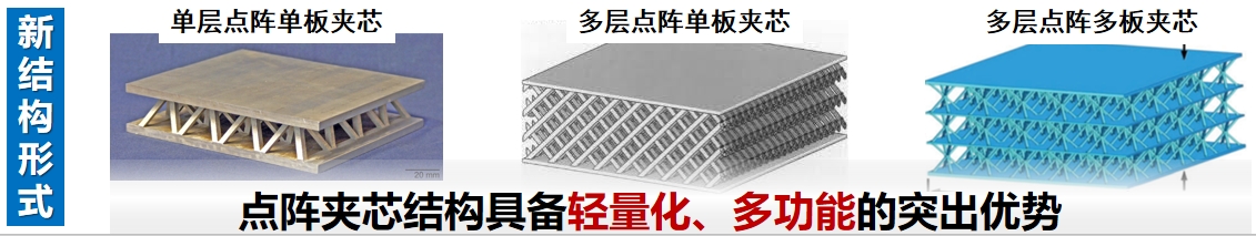 同时新结构形式:点阵夹芯结构,具备轻量化、多功能的突出优势。