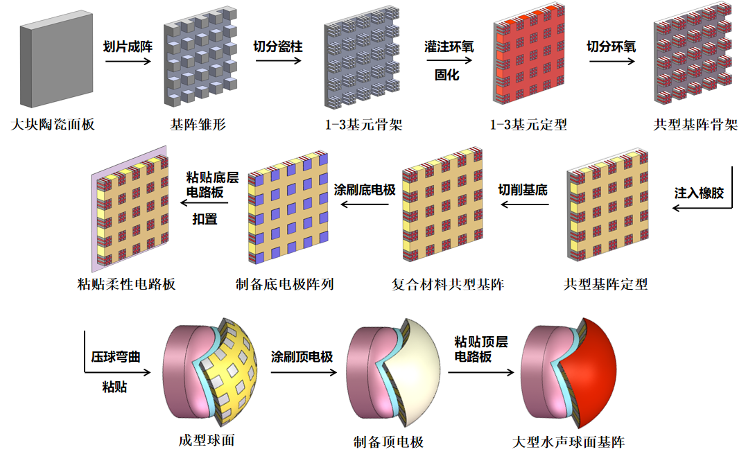 图3.适用于水声换能器的大型球面基阵制备流程图