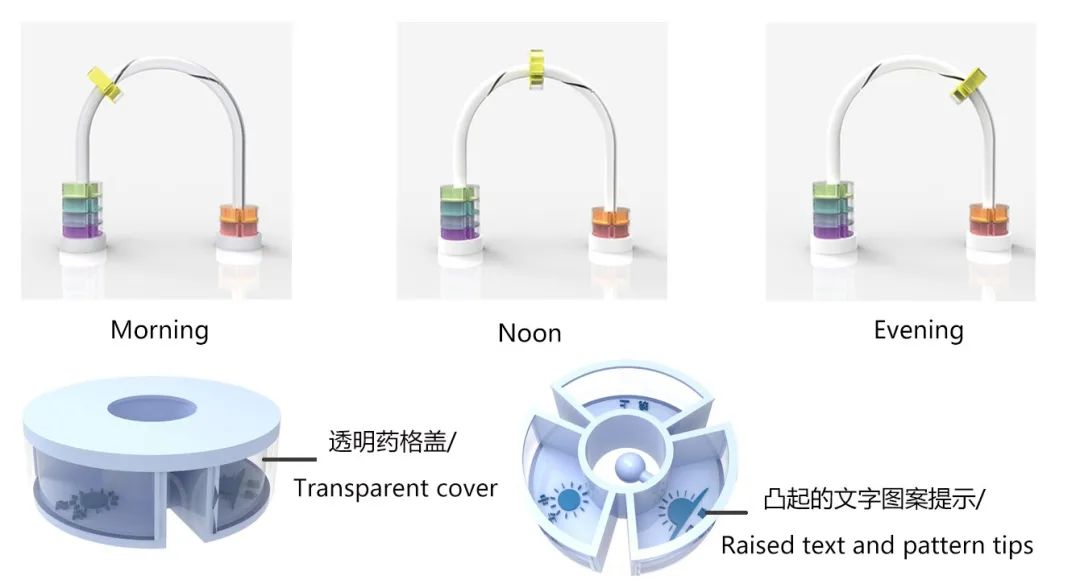 本项目相较市面上已有的分药盒,可以按早、中、晚三个时间显示服药时间,更加醒目、方便地提醒患者用药,且轨道与药盒分离的设计可以允许患者根据自身情况灵活配置药盒数量,学习成本极低的前提下仍具有相当的创新性。根据我国老年人的生活习惯来看,本项目具有良好的市场前景。