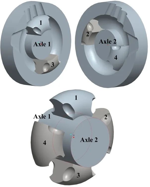 旋转对置活塞发动机没有复杂的曲柄连杆机构和配气机构,进、排气门的开启通过活塞的转动控制。由于进、排气门、喷油系统为分开式布置,进、排气门的面积比较大,有利于提高发动机的充量系数。旋转对置活塞发动机的动力输出轴每旋转一周,每个气缸完成一次完整的做功过程,其做功频率为传统四冲程往复式活塞发动机的两倍,且进、排气过程、燃烧过程较二冲程发动机更加完善。旋转对置活塞发动机可以运用于特种车辆、小型无人机、混合动力车辆、农用机械等的主动力系统。