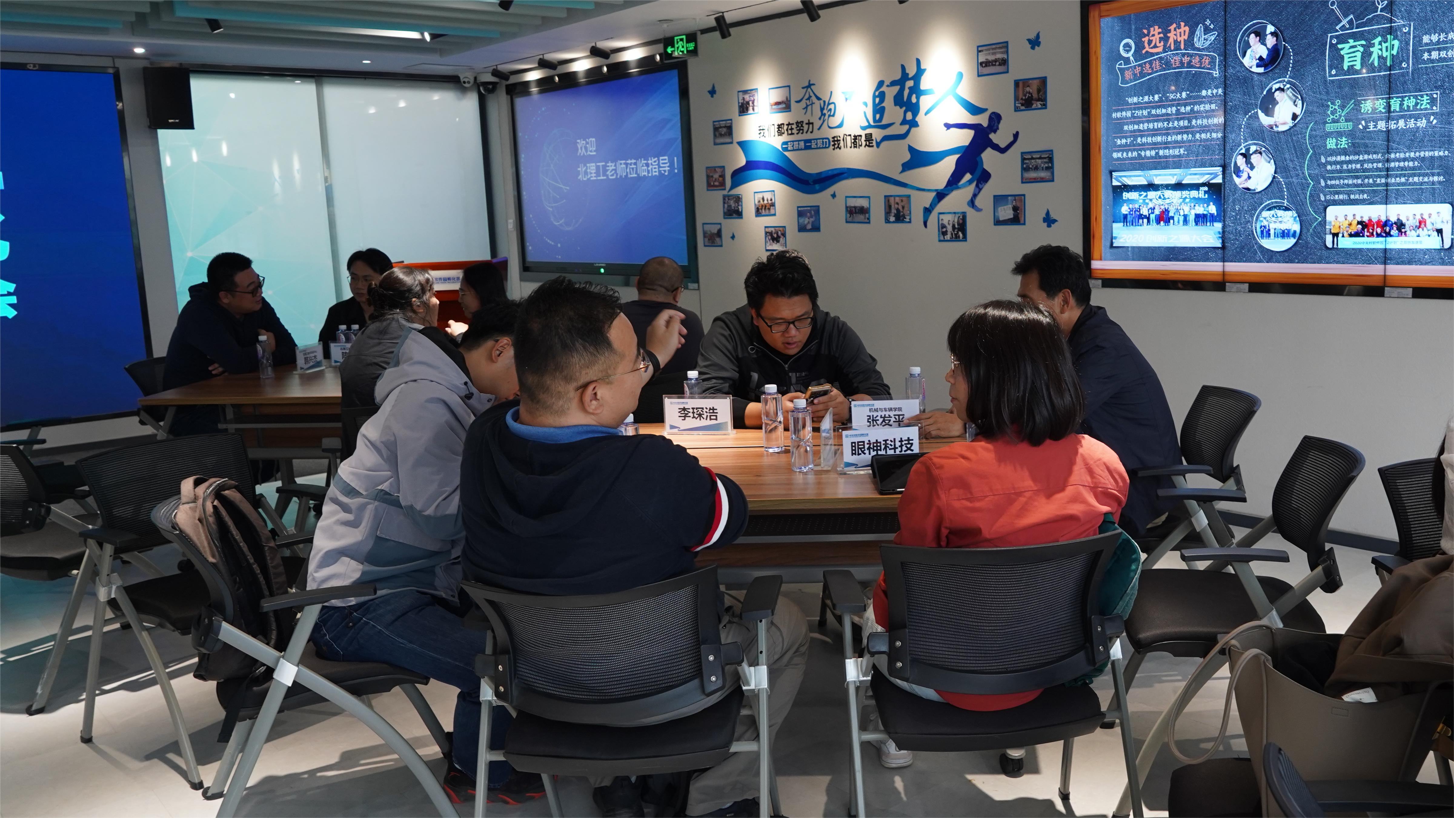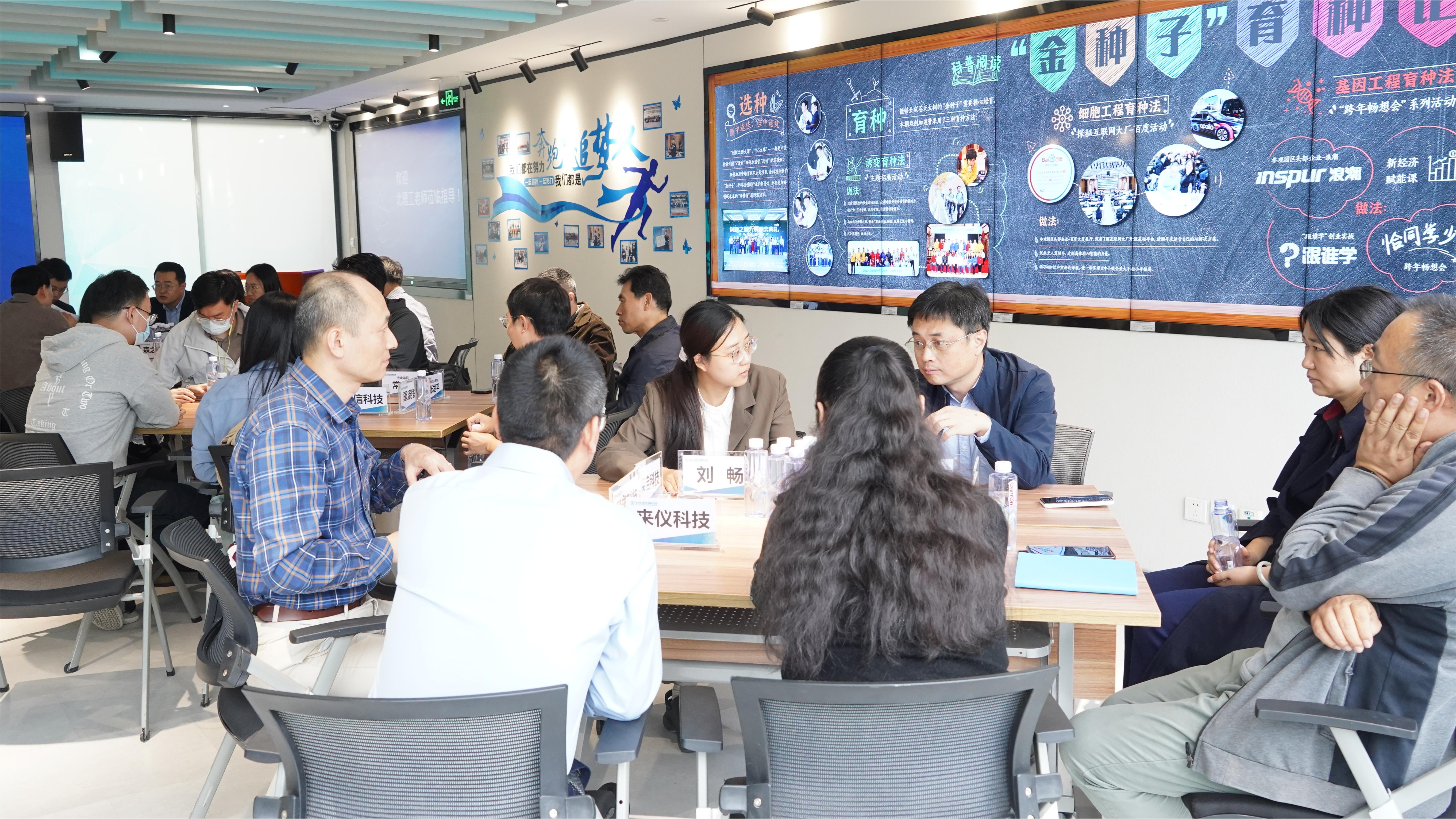 集中对接前,北理工专家教授一行在中关村软件园孵化器总经理任苹的带领下,参观了孵化器飞腾共建实验室、集中办公区、云端数字营销发布平台,深入了解了孵化器的运营情况。随后,与会人员在孵化器会议室举行了科技成果转化供需对接活动,会议由中关村软件园孵化器企划运营部副部长刘洋主持。
