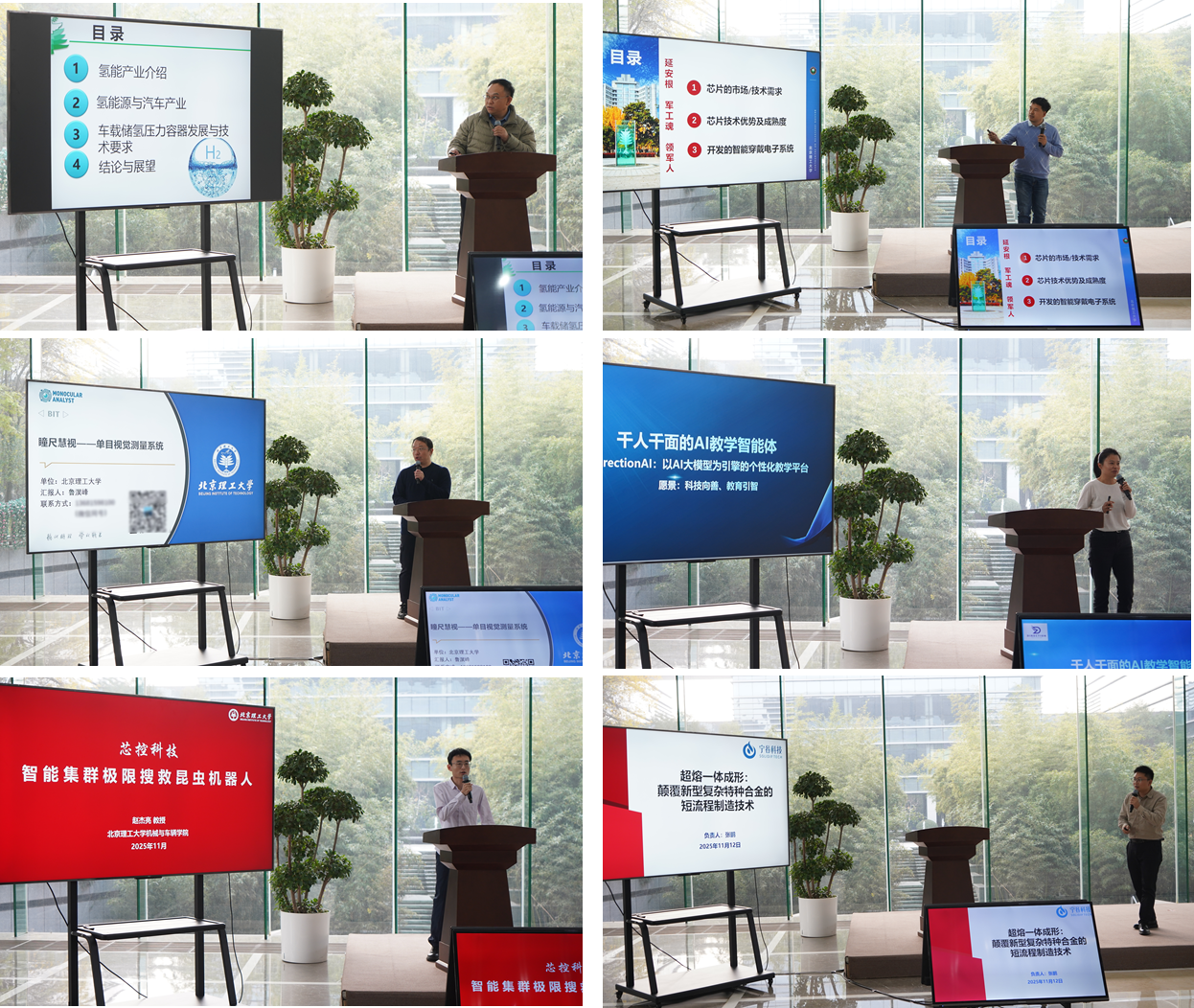 路演环节,来自bv伟德国际1946官网化学学院、计算机学院、集成电路学院和机械与车辆学院的6项高质量科技成果进行了集中展示,中关村资本、启航基金、中诺基金、房山基金小镇等投融资机构和相关企业围绕技术适配性、产业应用场景及合作模式展开交流对接,洽谈合作意向,以产业组织思维推动创新成果与市场资源精准匹配,为后续技术落地奠定基础。