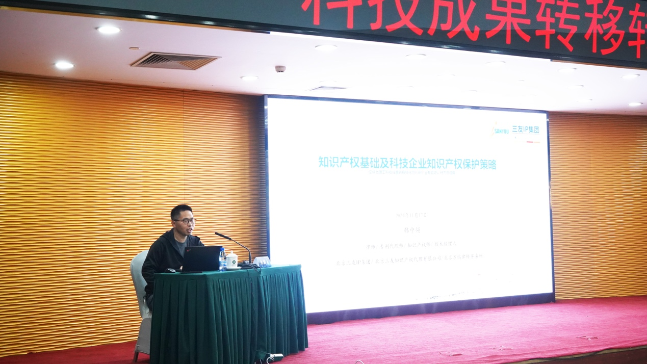 北京三友IP集团韩中领律师以《知识产权基础及科技企业知识产权保护策略》为题,介绍了专利、商标、版权和技术秘密相关的基础知识,结合详实的案例详细讲解了企业应该如何有效保护知识产权,阐释了知识产权权属清晰和技术研发先进性对公司上市的重要性。