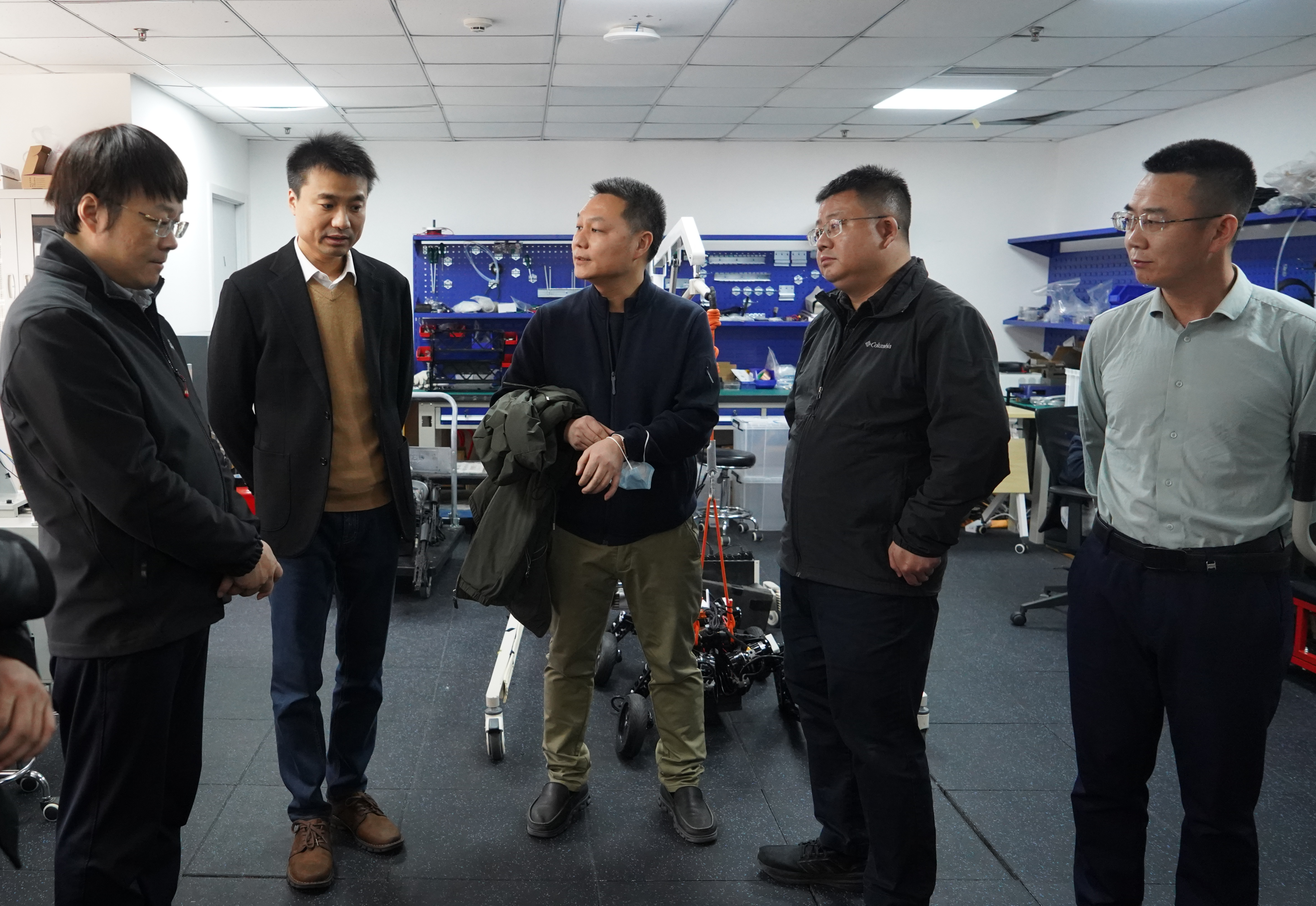 调研人员实地参观了伽利略的办公运营场地和研发实验室,深入了解了企业研发现状、产品应用、市场推广和发展规划。机电学院陈学超教授、孟非副研究员介绍了科技成果转化项目进展情况。