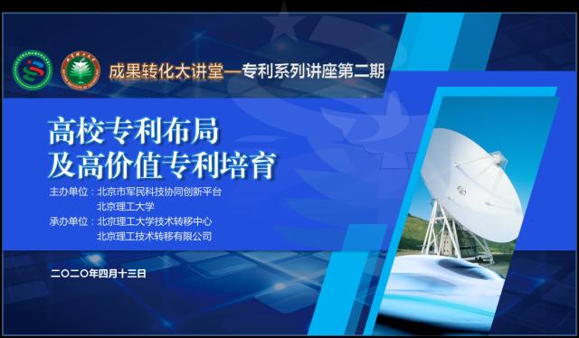 “成果转化大讲堂”——专利系列讲座由北京市军民科技协同创新平台和bv伟德国际1946官网技术转移中心共同策划,结合《关于提升高等学校专利质量 促进转化运用的若干意见》等文件精神,邀请业内资深专家围绕专利“高质量创造、高效益运用、高标准保护、高水平管理”做精彩分享,助力军民科技协同创新和科技成果转移转化。