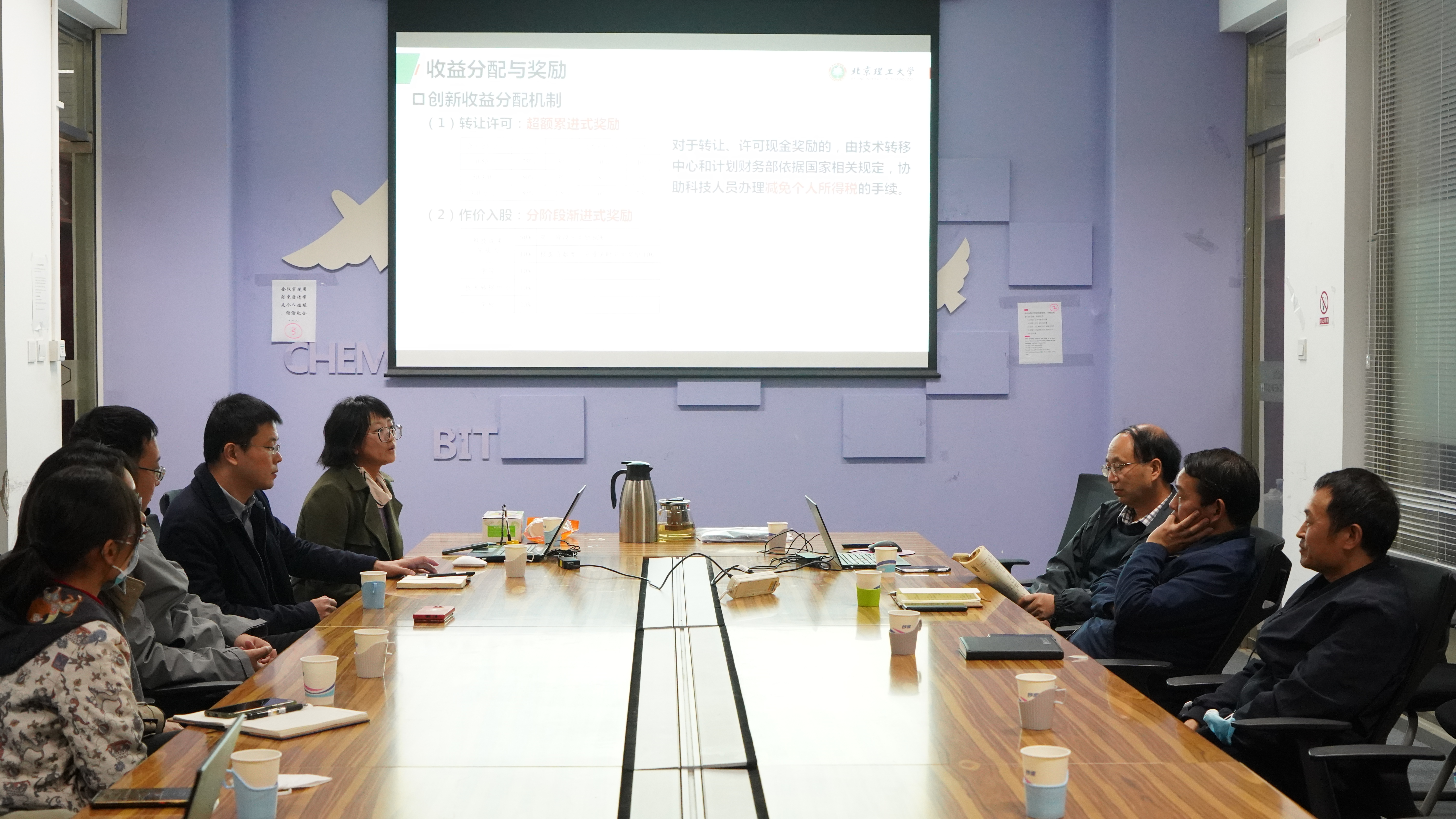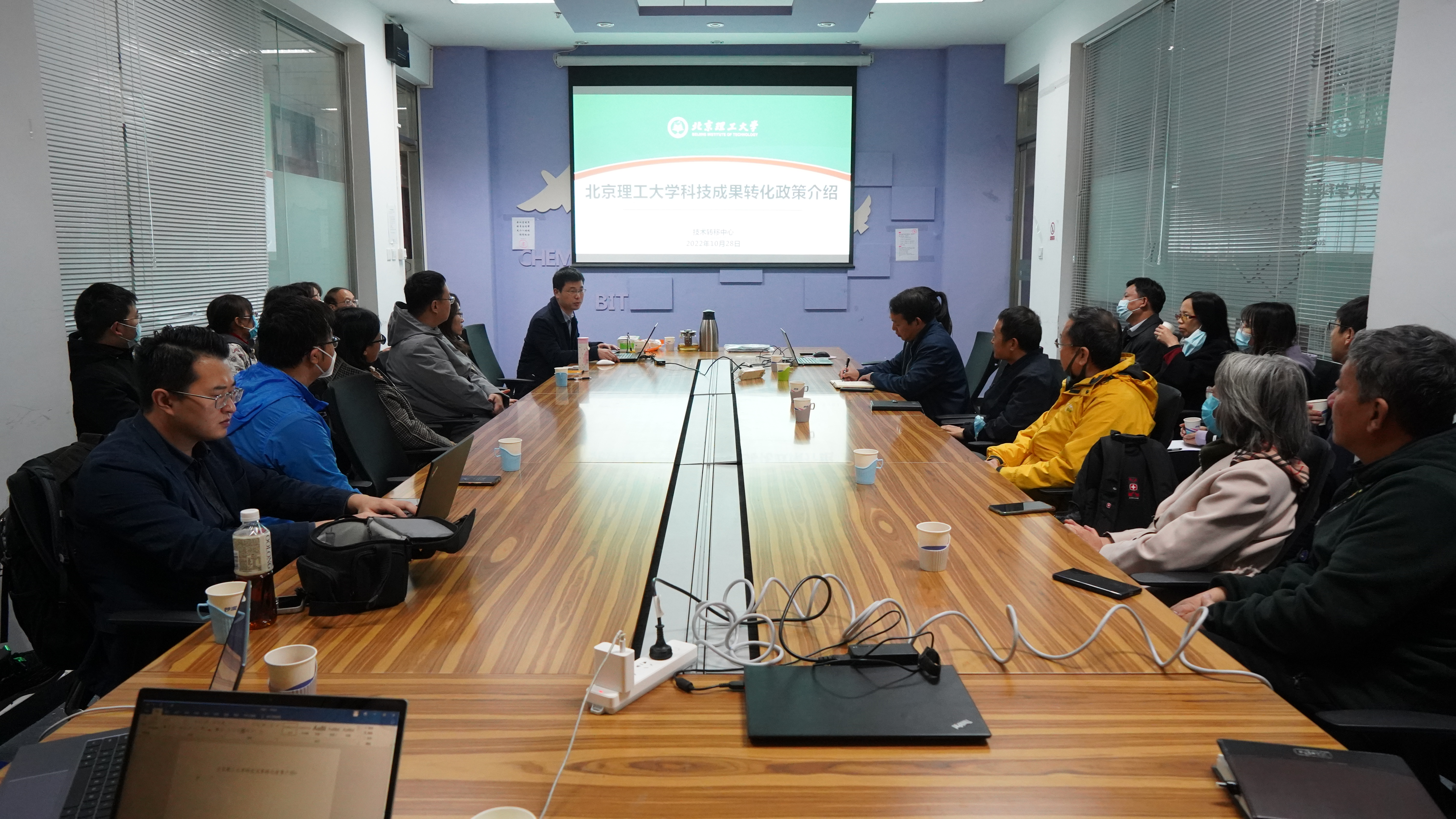 为更好地满足科研团队的实际需求,服务科技创新与成果转化,bv伟德国际1946官网技术转移中心联合相关学院,开展“转化服务进学院”系列活动。10月28日,技术转移中心“转化服务进学院”第1期在化学与化工学院成功举办。技术转移中心主任陈柏强带领中心各业务板块(含专利中心)骨干人员13人走进良乡校区,用一整天的时间,通过科技成果转化政策现场宣贯、面对面咨询、点对点服务等形式将转化服务送到化学与化工学院科研一线。化学与化工学院20多名科研人员和管理人员参加现场交流,副院长陶军主持政策宣贯环节。