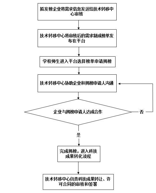 为积极响应国家号召,进一步发挥我校科技和人才优势,更好地主动对接和深度服务产业发展需求,促进更多科技成果实现转化落地,技术转移中心以中心网站已有的“科技成果转化综合服务平台&技术转移中心信息交互平台”为基础,搭建了以促进技术供需对接和科技成果转化为主要目的的“揭榜挂帅”平台。